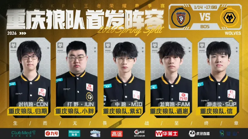 完美电竞-[预告]重庆狼队 vs 深圳DYG首发出炉:归期、小胖、信首发